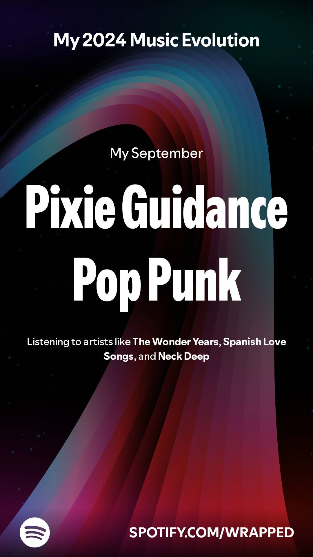 A whole other AI-infused mess, of course, were the incredibly stupid names for “your music evolution” - a feature which selectively told users what artists they played a lot in certain months, and which replaced last year’s great feature of telling you which month you played each of your top 5 artists in the most. Seriously, can someone explain to me what the hell “Pixie Guidance Pop-Punk” even means?